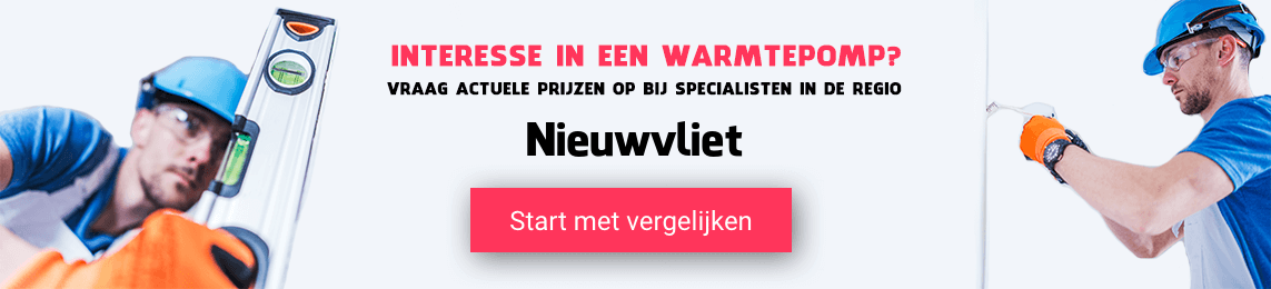 Gemakkelijk de actuele warmtepomp aanbiedingen vergelijken? Wij hebben een handig stappenplan gemaakt. Er zijn meerdere warmtepomp aanbieders in Nieuwvliet. Welk bedrijf kan mij verder helpen? Niet vergeten: Kies nooit gewoon voor de scherpste offerte / installateur. Neem ook zaken in acht als after sales service. Deze week een unieke offerte krijgen? Druk dan op de button ‘vergelijken’, beantwoord de gestelde vragen en ontvang advies + offerte op maat.